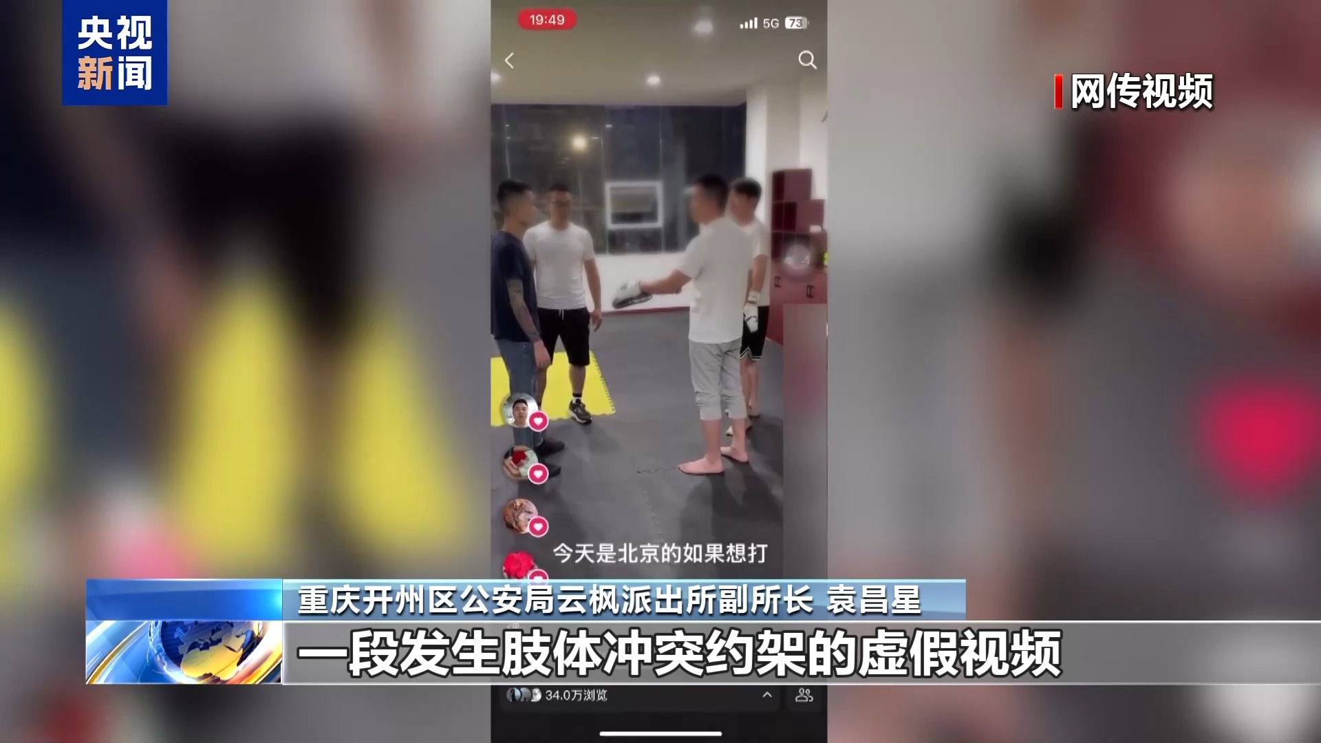 *重慶開州區公安局雲楓派出所副所長 袁昌星:*何某、吳某為吸引眼球,博取流量,商量在短視頻平台進行炒作。兩人先是故意發視頻詆譭對方,然後在直播連麥時相互吵架,後雙方拍攝了一段發生肢體衝突約架的虛假視頻,並讓朋友劉某等人發佈到短視頻平台上。