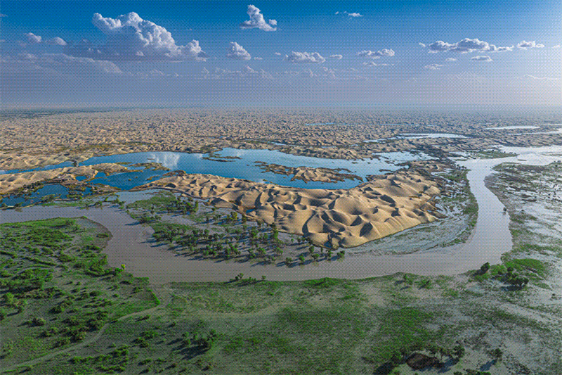 荒涼大漠,生命湧動。每片綠洲都在訴説頑強,每棵胡楊都是堅韌的化身。塔里木河以水為墨,在沙海書寫生命詩篇。
