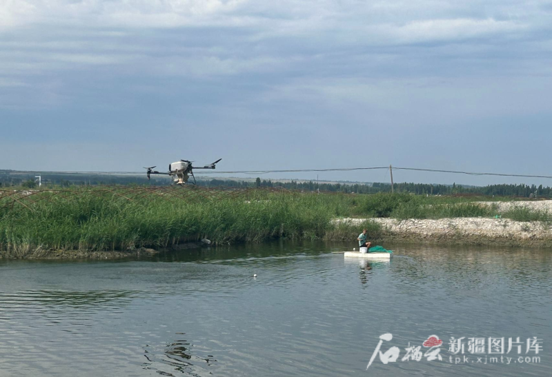 “空中投餵+水下養殖”的立體場景。石榴雲/新疆日報記者 宋衞國攝