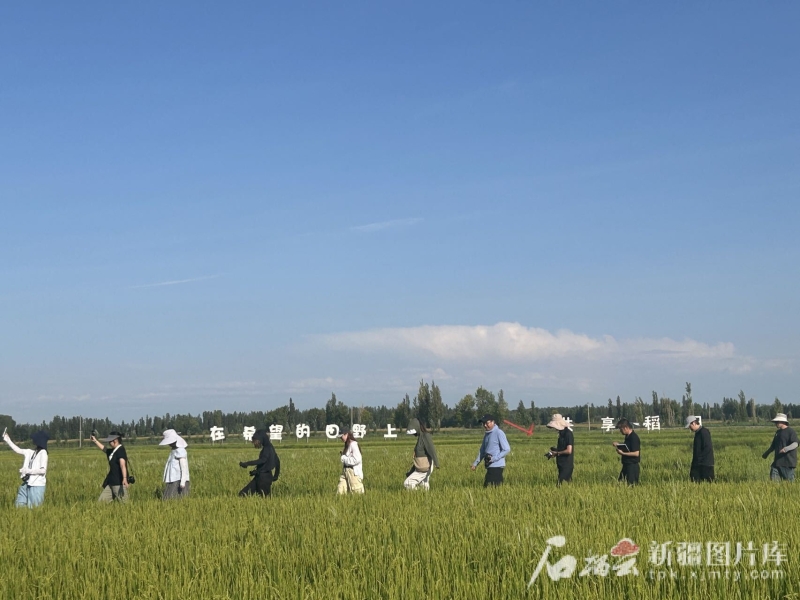 察布查爾大渠不僅帶來了水稻種植業和特色水產養殖業的發展,還帶動了不少創業者來察布查爾錫伯自治縣納達齊牛錄鄉稻田裏作畫。