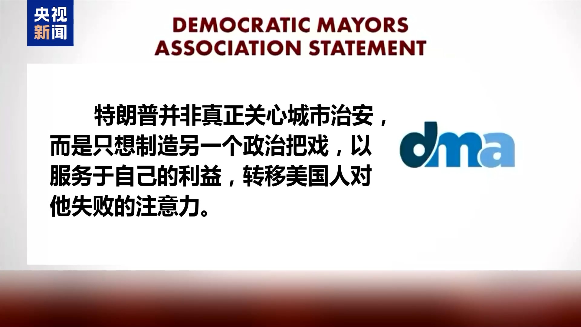 與此同時,民主黨人則紛紛對特朗普做法予以譴責。由全美3萬多名大小城市的民主黨籍市長組成的市長協會發表聲明説,特朗普並非真正關心城市治安,而是隻想製造另一個政治把戲,以服務於自己的利益,轉移美國人對他失敗的注意力。