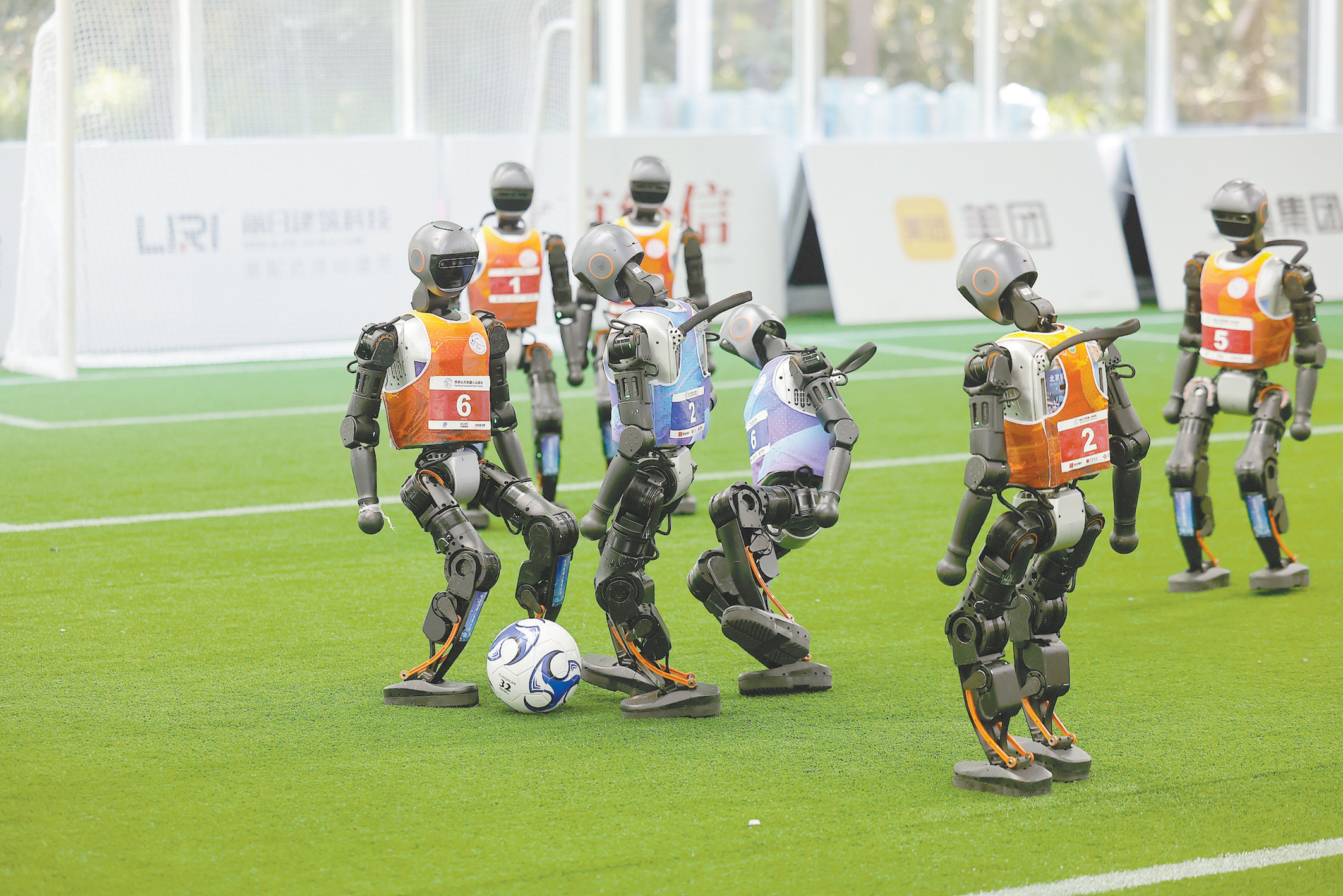 足球是人類社會的“世界第一運動”,機器人踢足球同樣成為焦點。本次機器人運動會的足球項目競爭激烈,在正賽前設置了預選賽。13日上午,記者觀看了清華大學“火神隊”的5V5足球賽,這支隊伍剛剛在7月的2025 RoboCup巴西機器人足球世界盃上摘得冠軍。