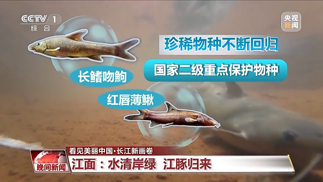 如今,最新監測到長江江豚種羣已達1249頭,比5年前增長了200多頭。重新回到長江家園的不只是江豚,長江物種多樣性水平在穩步回升,2021年至2024年,長江流域累計監測到土著魚類344種,比禁漁前2017年至2020年增加了36種。