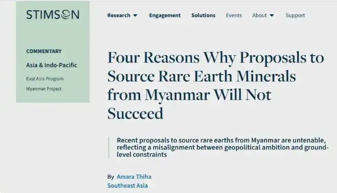 然而,美國智庫史汀生中心的地緣政治專家阿瑪拉·蒂哈(Amara Thiha)卻直接一盆冷水潑了過去,表示當地不僅缺少能商業化且成規模產出稀土的技術和物流基礎,而且從挖稀土礦的設備到其他物資的供應也需要中國的支持。他因此建議美國放棄這個想法。