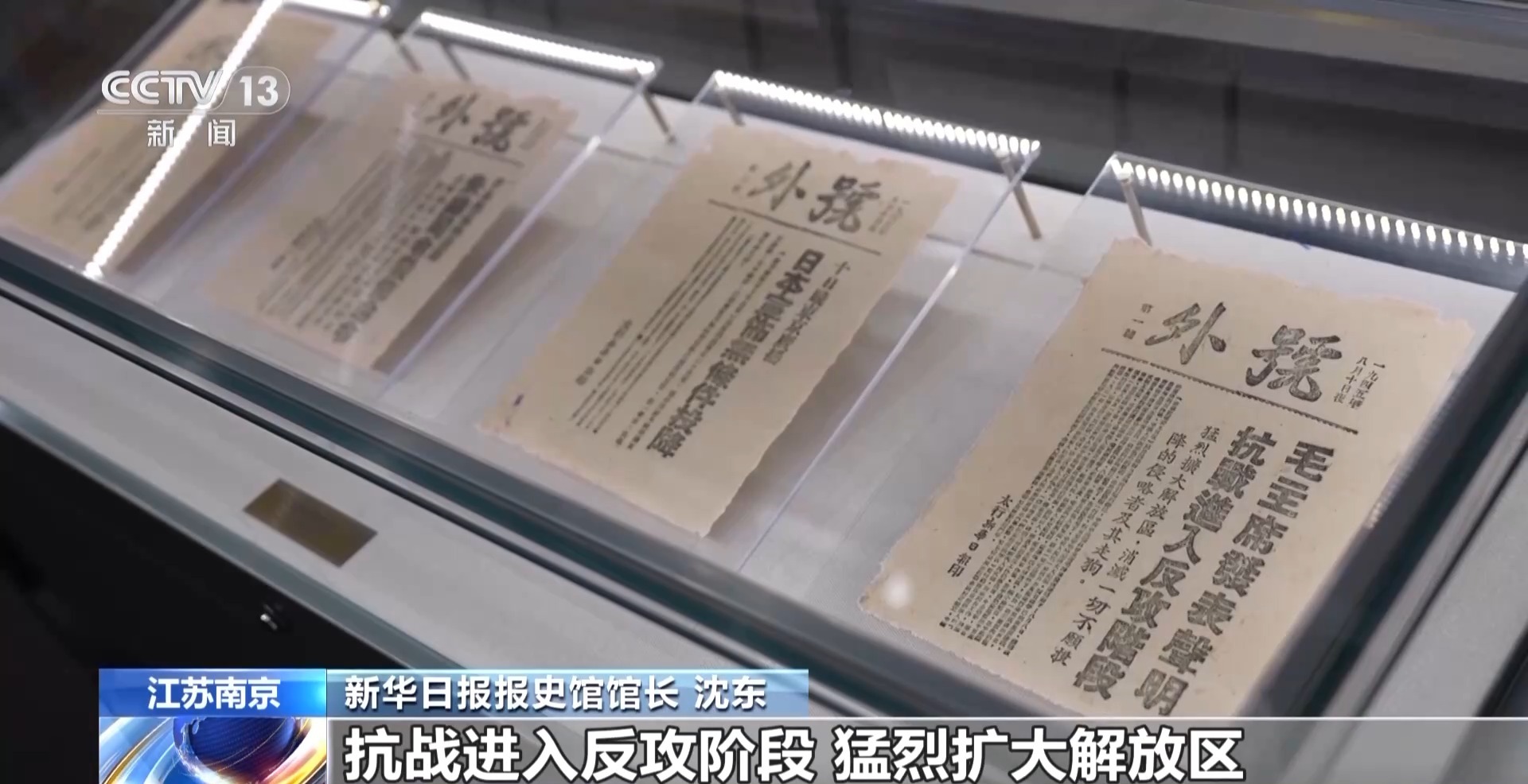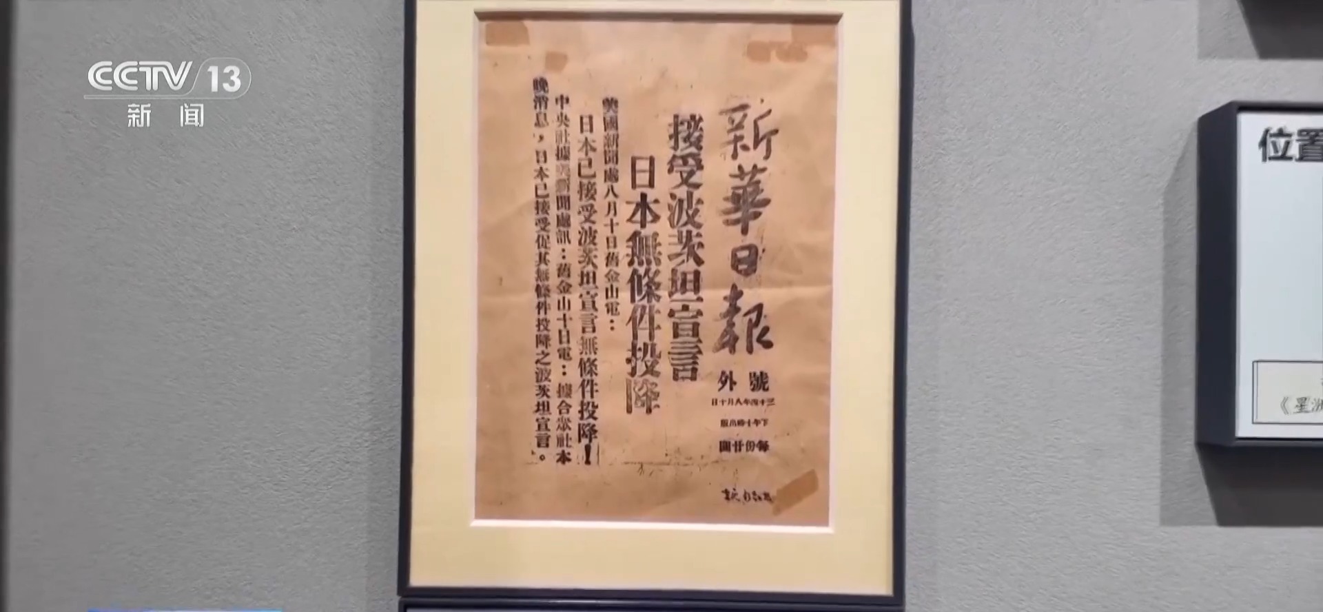 *新華日報報史館館長 沈東:*第一份所接收的號外,是1945年8月10日晚10時,我們在這個裏面發佈的時候也是字斟句酌,對於這方面是也只發表了日本認可《波茨坦宣言》。對具體的要求是到8月15日的時候,我們再有正式的內容來去呈現。當時我們通過電報信息第一時間來接收到、從八路軍辦事處接收到這個信息之後。我們直接就在化龍橋把這個號外印製出來。散發給民眾,我們的信號傳播出去,是有了一個極大的振奮人心的作用。