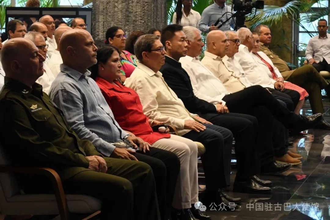 古共中央第一書記、國家主席迪亞斯-卡內爾,中央政治局委員、中央組織書記莫拉萊斯,外交部長羅德里格斯等古巴黨政領導人,中國駐古巴大使華昕,中資企業和華僑華人及留學生代表,多國駐古使節及各界友好人士約200人出席。