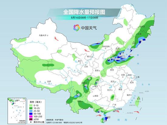具體來看,中央氣象台預計,今天,內蒙古中西部、東北地區東部、華北中南部、黃淮東部、四川盆地西部和南部、重慶中北部、雲南西北部和東南部、廣西南部沿海、廣東西南部沿海、海南島等地部分地區有中到大雨,其中,內蒙古中部、吉林東部、遼東半島、山西中部、河北南部、山東北部和東部、廣西南部沿海、海南島東北部等地部分地區有暴雨,局地大暴雨。