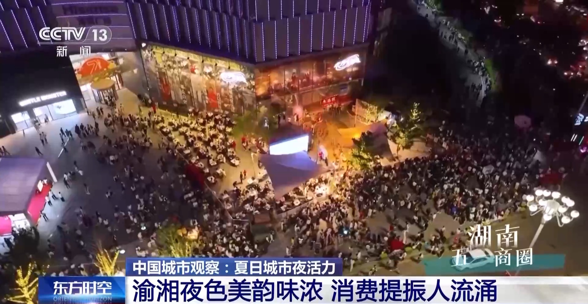 這裏是湖南長沙,五一商圈霓虹閃爍,美食燒烤藏着市井煙火,就在剛剛過去的7月份,這裏夜間累計客流超過805萬人次,“熱辣長沙”的活力持續升温。