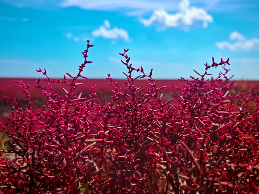*張文清:*鹼蓬草適合在鹽鹼地裏生長,目前鹼蓬草的茂密和鮮豔程度,證明了我們生態修復恢復得很好。據相關部門統計,修復以後的紅海灘增加了200多種鳥類在此棲息。我們還打造了“離京最近紅海灘”這個品牌。到了暑期旅遊時節,在濱海路沿岸有很多遊客參觀遊玩。大家隨時都能看到這些生態美景,不收取任何費用。