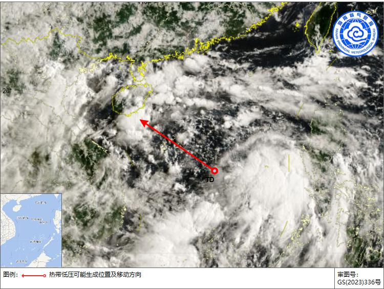 預計,南海中部的熱帶擾動將於24小時內加強為熱帶低壓,隨後西北行,趨向海南島東南部一帶沿海,強度變化不大。