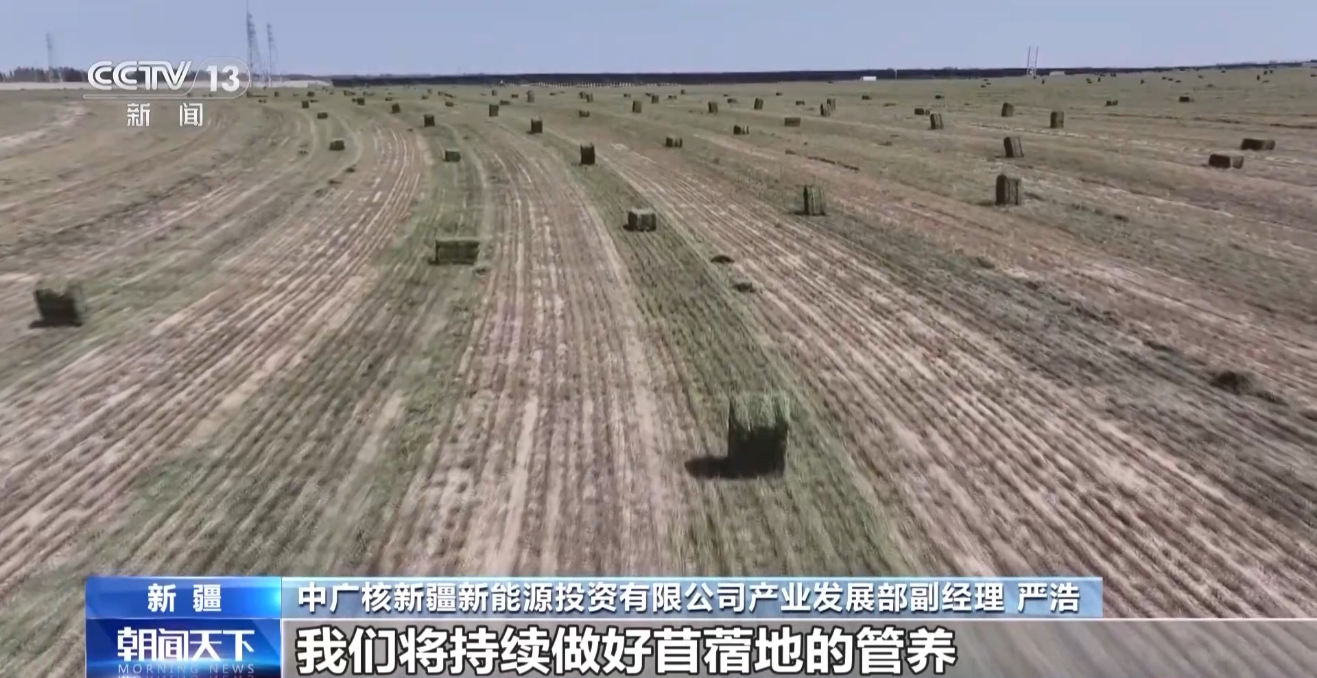 *中廣核新疆新能源投資有限公司產業發展部副經理 嚴浩:*我們將持續做好苜蓿地的管養,力爭通過5~8年的時間,使土地的有機質越來越多,實現沙漠變良田。