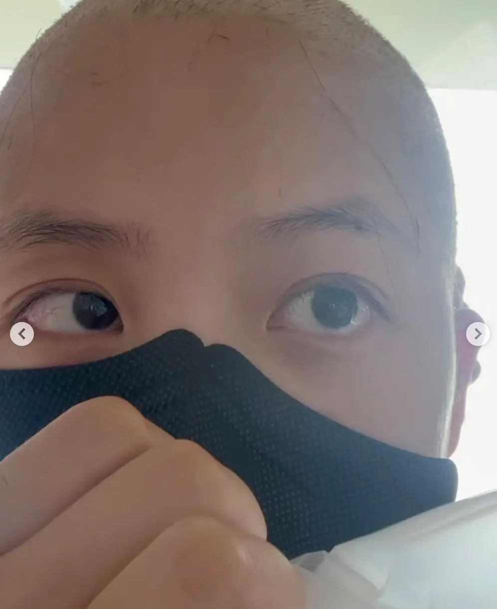 金智源發出了多張自己近段時間的照片,其中一張她剃光了頭髮。“頭髮掉光,人也胖了許多——過去只敢把精心修飾的樣子示人,如今這個陌生的模樣,我連發一張照片都怕嚇到別人。但現在,我終於鼓起勇氣,想告訴大家,我還算過得不錯!”