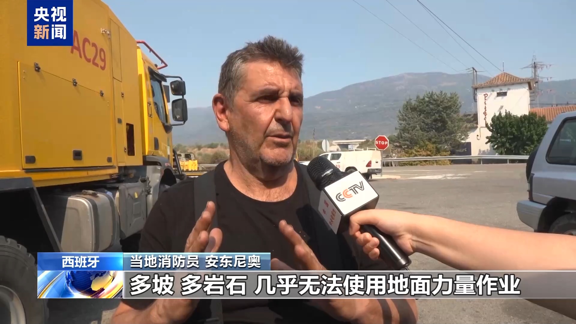 *當地消防員 安東尼奧:*這裏的地形非常陡峭,多坡、多岩石,幾乎無法使用地面力量作業,幾乎全部只能依靠空中力量。風向不斷變化,火勢又會被重新點燃,所以情況並沒有更好,部分區域已經被控制住了,但還有其他火點在燃燒。