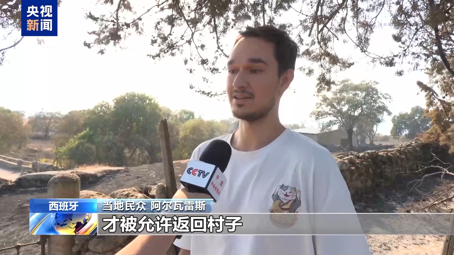 *總枱記者 魏帆:*這裏是西班牙西部地區埃斯特雷馬杜拉自治區的一處火災現場,可以看到周圍的草木已經被燒得焦黑,地面上覆蓋着一層灰燼,空氣中也瀰漫着燒焦的味道。我身後的房屋在火災後已被廢棄,院落裏依然可以看到被燒燬的痕跡,當地天氣炎熱乾燥,氣温幾乎達到40攝氏度,使滅火工作面臨很大挑戰。