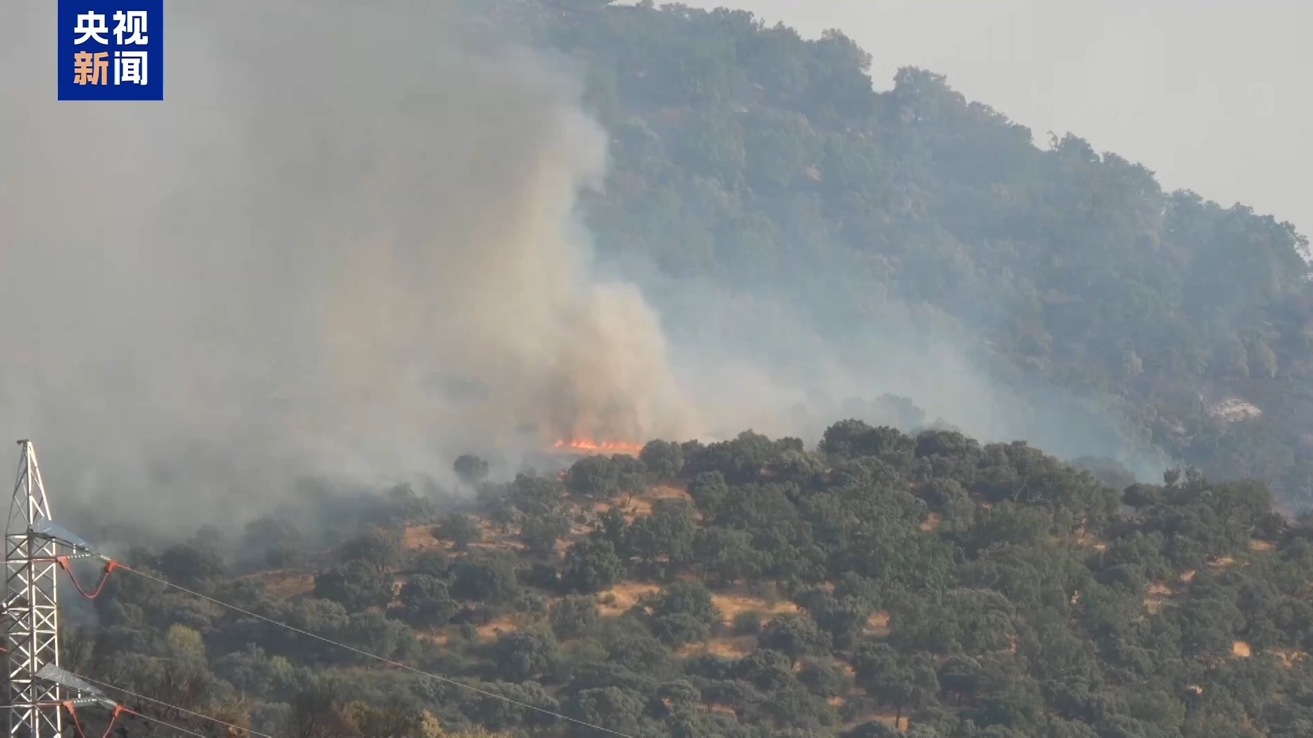 *總枱記者 魏帆:*我正位於西班牙西部埃斯特雷馬杜拉自治區的高速公路旁。我身後的山體被濃煙籠罩,煙霧順着風向快速擴散,能見度明顯下降。受高温和大風影響,火勢在山林間蔓延。當地消防正在全力撲救。