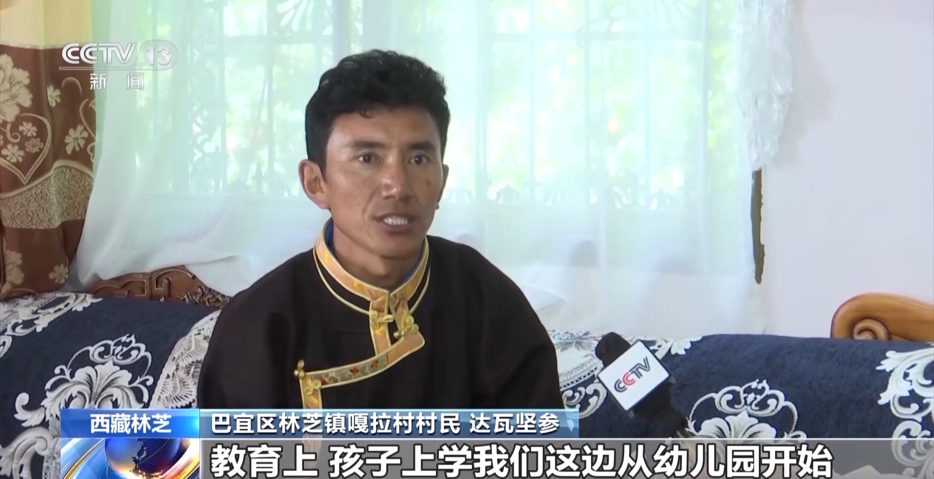 *西藏林芝市巴宜區林芝鎮嘎拉村村民 達瓦堅參:*我對現在的生活很滿意,國家的政策那麼好,我們自己有什麼工作去幹就行了。教育上,孩子上學我們這邊從幼兒園開始都是“三包”(包吃、包住、包學習用品)政策,看病的話,90%可以刷醫保。