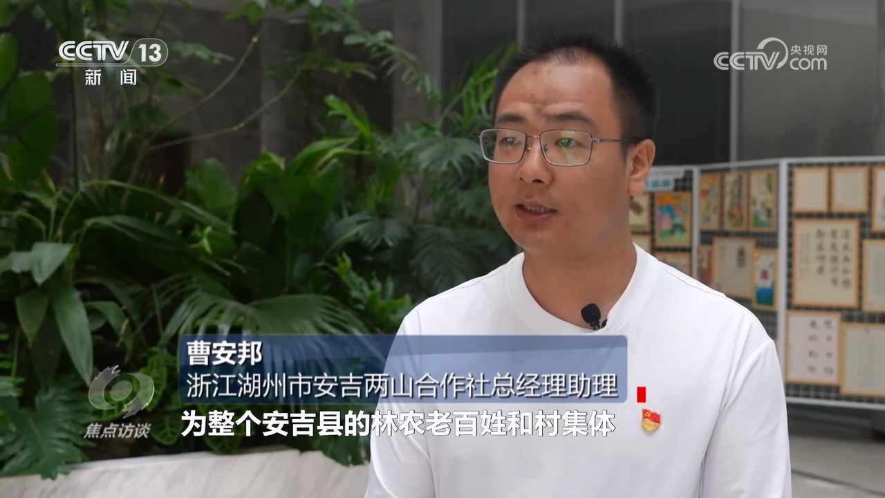 浙江湖州市安吉兩山合作社總經理助理曹安邦:“隨着這個項目的開發我們配套建設了1000多公里林道,包括100多個竹材分解點,配合竹產業的增值,為整個安吉縣林農老百姓和村集體帶動分紅5億元。”