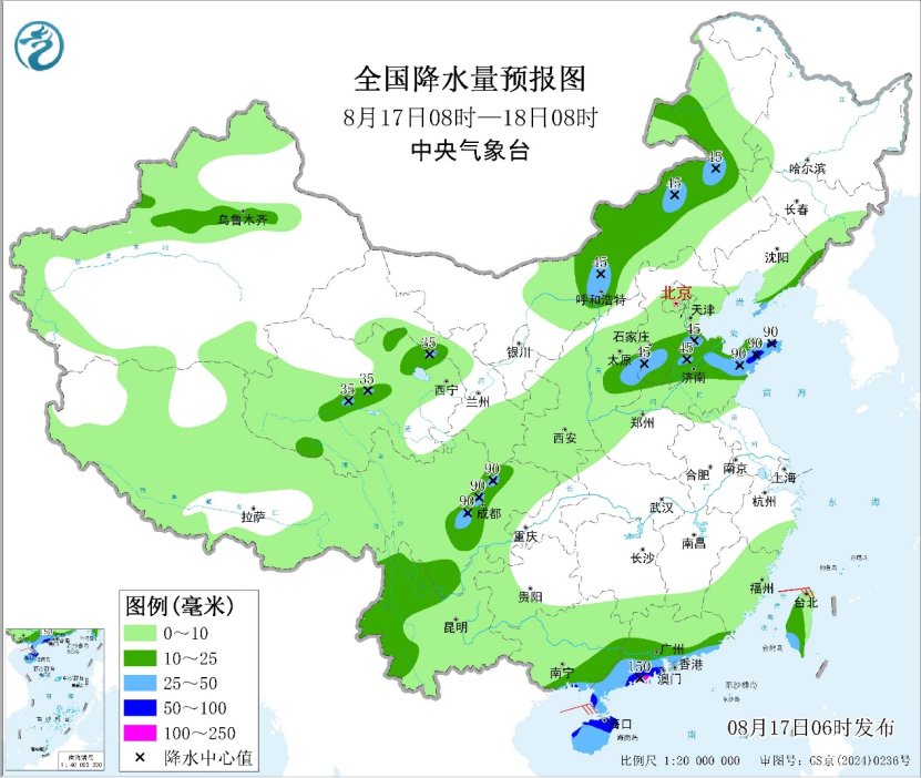 除了華南地區的降雨外,北方地區近期也多對流性降雨。昨日,內蒙古西部、吉林中部和東南部、遼寧中東部、山西東南部、河北東南部、山東中北部、四川東北部和南部、海南島東部等地部分地區出現暴雨或大暴雨,山東濰坊局地特大暴雨。預計今天白天到夜間,內蒙古中東部、山西東南部、河北南部、山東中北部、青海中北部、四川盆地西部等地部分地區有大到暴雨,內蒙古中東部、西北地區中部、華北中南部、黃淮北部、西南地區北部、華南南部等地的部分地區將有8級以上雷暴大風或冰雹天氣,其中,內蒙古中部、山東中東部等地的部分地區將有10級以上雷暴大風。