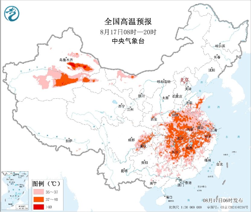 未來一週,受副熱帶高壓控制,黃淮、江淮、江漢中東部、江南北部、四川盆地等地將有持續性高温天氣。中央氣象台今晨繼續發佈高温黃色預警,預計8月17日白天,黃淮大部、江淮、江漢東部、江南中北部、陝西關中、四川盆地等地的部分地區有35~39℃的高温天氣,其中,湖北東部、湖南東北部、安徽南部、江西北部、浙江中部等地局地最高氣温可達40℃以上。