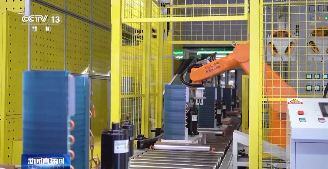 同樣,位於廣東中山的另一家空調生產企業,近期歐洲訂單量也持續增長。在生產車間裏,工業機器人集羣24小時不停工,進行裝配、檢測、分揀等工序。針對歐洲市場,企業還推出了能實現多國語言控制的AI語音空調。