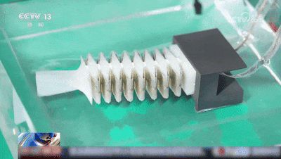 液體材料如何驅動機器人?科研團隊的巧思,是將常見的物理現象拓展到新的應用場景。由於傳統的電機驅動在深海高壓、低温環境下作業風險和成本比較高,科研團隊在裝有液體的塑料袋兩側安裝柔性電極,通過交替通電,從而實現用塑料的收縮形變來進行驅動。