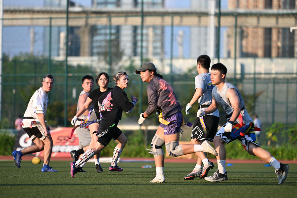 7月27日,腰旗橄欖球愛好者在比賽中。新華社記者 胥冰潔 攝