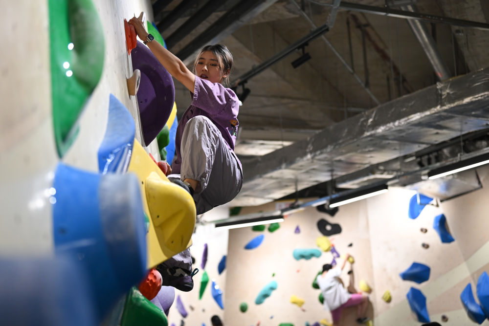 “攀巖時你能沉浸在只有自己和抱石的世界裏,很多內向的朋友也被我帶動起來,可想而知它的魅力。”她説。