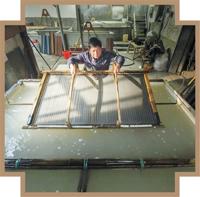“現代工藝紙會變色直至粉末化,但匠心打磨的竹紙則不同。”他説,紙壽千年的背後是敬畏自然,“在我們這裏,造紙用的水比飲用水還嬌貴。”