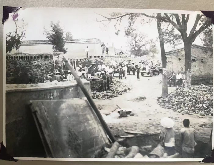 ↑相冊裏的照片:1939年日軍逼迫河北固安百姓修築碉堡。