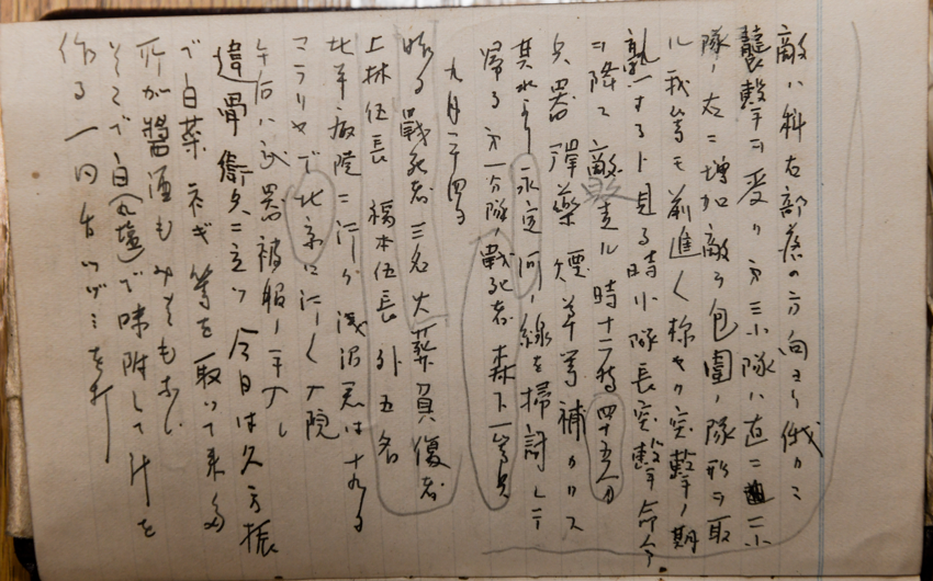 ↑該日記中關於1938年9月23日在永定河沿岸遭到我抗日部隊襲擊被打死三名士兵等內容。