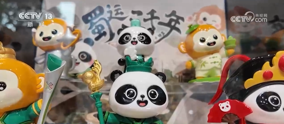 在成都世運會的競賽場館、運動員村以及大街小巷,隨處可見賽會紀念品商店,此外還有許多分散的集裝箱點位,店鋪里人頭攢動。世運會的吉祥物“蜀寶”和“錦仔”不僅做成手辦、盲盒、冰箱貼、徽章,也戴上三星堆出土的青銅面具、或者玩起川劇變臉,化身文化交流的使者,成為這個夏天最受歡迎的賽事限定款。