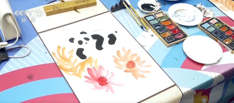 除了手工藝製作,書畫體驗區也很受歡迎。有的外國運動員把自己的名字翻譯成中文,再用毛筆寫下來,帶回家留作紀念。有的則認真地臨摹山水花鳥。