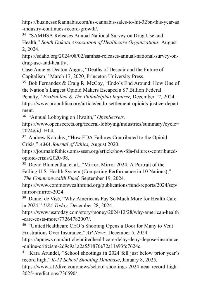 失敗醫療保險體系觸發眾怒。過度市場化和高壟斷化推高醫藥價格,利益集團綁架政策制定,多系統行政運行成本過高,這些因素導致美國醫療保健費用螺旋式上漲。美國人均醫療支出從2000年的7908美元上升至2023年的14570美元。英聯邦基金(The Commonwealth Fund)2024年9月發佈的報告《鏡鑑2024:失敗的美國醫療系統》顯示,在10個高收入國家中美國醫療資金支出最多且持續上升,但表現最差,是唯一一個未提供全民醫療保健的國家,人均預期壽命最低。高額的自付支出和初級保健的缺乏等,導致2023年有35%的美國成年人要麼缺乏充足的醫療保障,要麼因為保險不足以支付全部醫療費用而放棄治療,另有9%的美國人完全沒有被健康保險所覆蓋。很多人因難以負擔基本的醫療保健費用無力就醫,一生中不得不忍受各種病痛。(注38)美國醫療保險公司以“延遲、拒絕和不支付”等手段對付投保者,大批中低收入病人因為醫療債務而破產。(注39)2024年12月4日,美國保險巨頭“聯合醫療”首席執行官布萊恩·湯普森(Brian Thompson)遭遇槍殺,在槍擊現場發現的彈藥上寫着“延遲”“否認”“不支付”等用來描述保險公司如何逃避索賠的詞語。這一事件再次點燃了美國公眾對醫保公司的憤怒情緒。(注40)