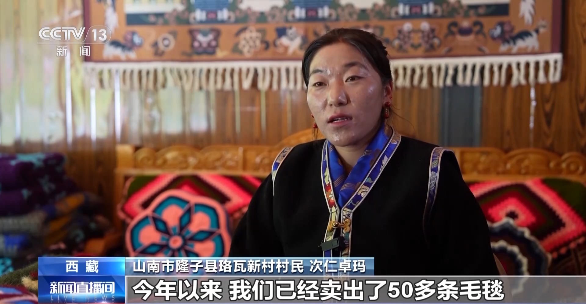 *山南市隆子縣珞瓦新村村民 次仁卓瑪:*今年以來,我們已經賣出了50多條毛毯,100多個靠枕,其中一半是通過網絡直播賣出的。接下來我想把這門手藝教給村裏更多的人,大家一起把致富之路越走越寬。