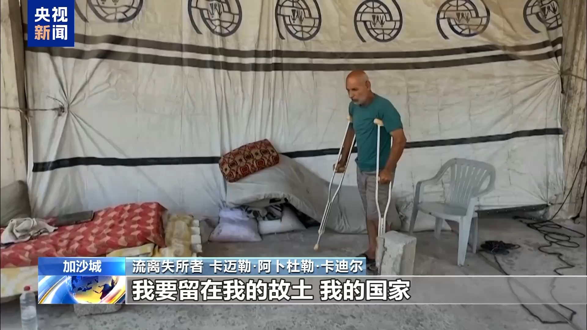 *流離失所者 卡邁勒·阿卜杜勒·卡迪爾:*他們想佔領加沙,難道不是已經佔領了嗎?讓平民們留在家裏,然後實施軍事管制,可為什麼讓我們流離失所,這有什麼意義?我們還能去哪裏?我們之前就曾流離失所,然後發生了什麼?只有一而再、再而三地流離失所。這場戰爭什麼時候才能結束?