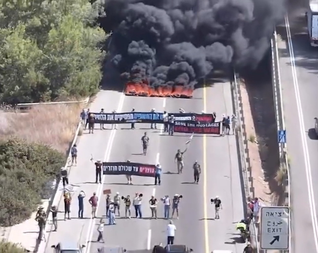 報道稱,發起抗議集會的以色列團體“人質和失蹤人員家屬論壇”表示,17日有近50萬人參與了特拉維夫的抗議示威活動。該組織還估計,當天約有100萬人在以色列全國各地參加了數十場抗議活動。以色列多地的示威者封鎖道路、焚燒輪胎,一些抗議者與警方發生衝突。抗議者呼籲內塔尼亞胡政府與巴勒斯坦伊斯蘭抵抗運動(哈馬斯)達成停火協議,讓所有被扣押人員獲釋並結束戰爭。