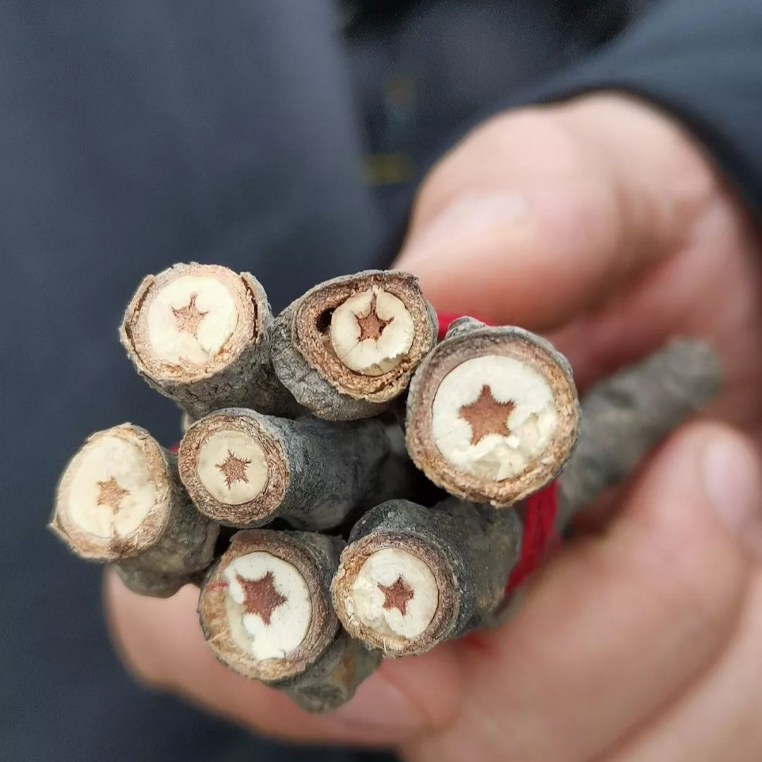 1940年清明節前後,八路軍總部發動萬餘軍民開展植樹運動,朱德總司令和總部機關將士一道參加。奇特的是,沿着樹枝的橫紋輕輕掰開,在樹枝的斷面就會出現一個非常清晰的“五星”圖案,端端正正,就像紅軍的五星帽徽一樣,人們親切地稱之為“紅星楊”。