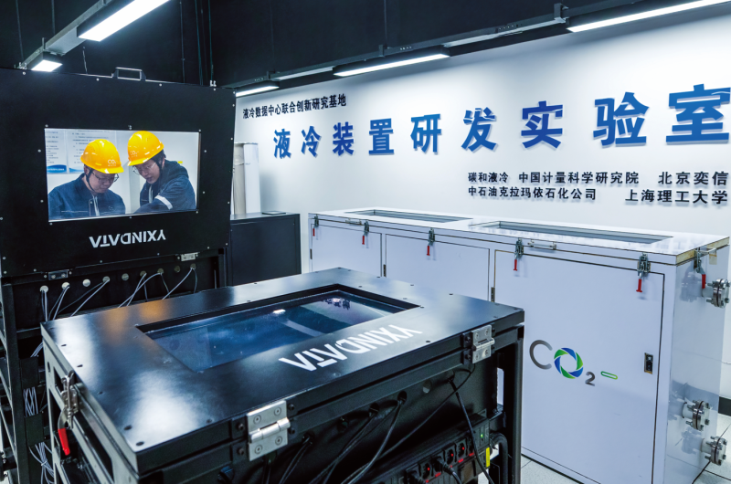 克拉瑪依雲計算產業園克拉瑪依市碳和液冷數據中心,工程師正在進行工程試驗。閔勇 攝