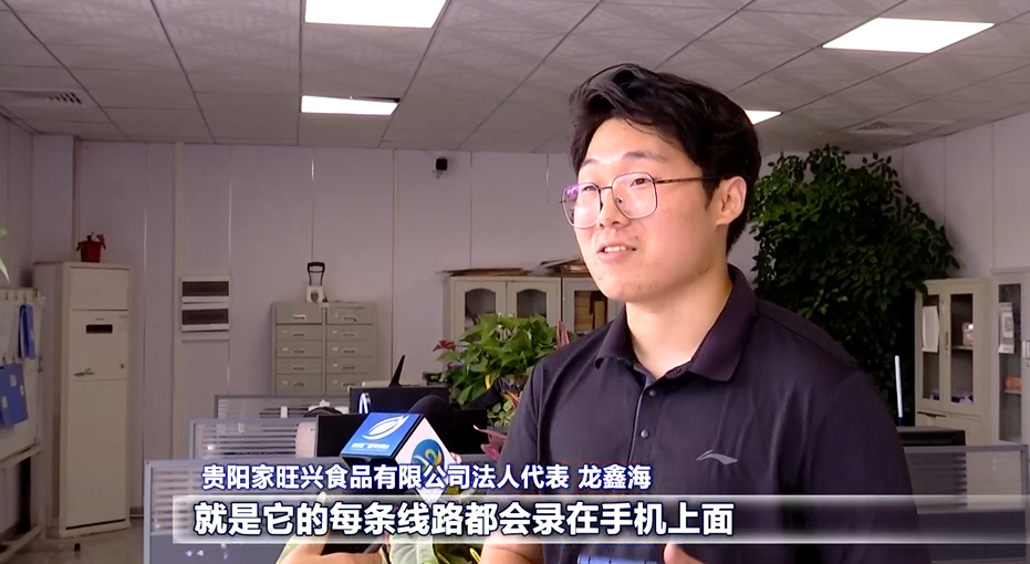 *貴陽家旺興食品有限公司法人代表 龍鑫海:*只需要一個人,就是它每條線路都會錄在手機上面,錄好了以後按順序發貨,我們給上面貼上一個標籤,到了目的地了以後這個客户就自己下車了,然後車就自己駛往下一個目的地了,極大節約了成本,也更省心、更省力。