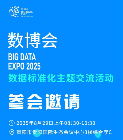 數據標準化主題交流活動作為2025中國國際大數據產業博覽會的重要議程,將於2025年8月29日上午在貴陽市貴陽國際生態會議中心3樓綜合廳C舉行。