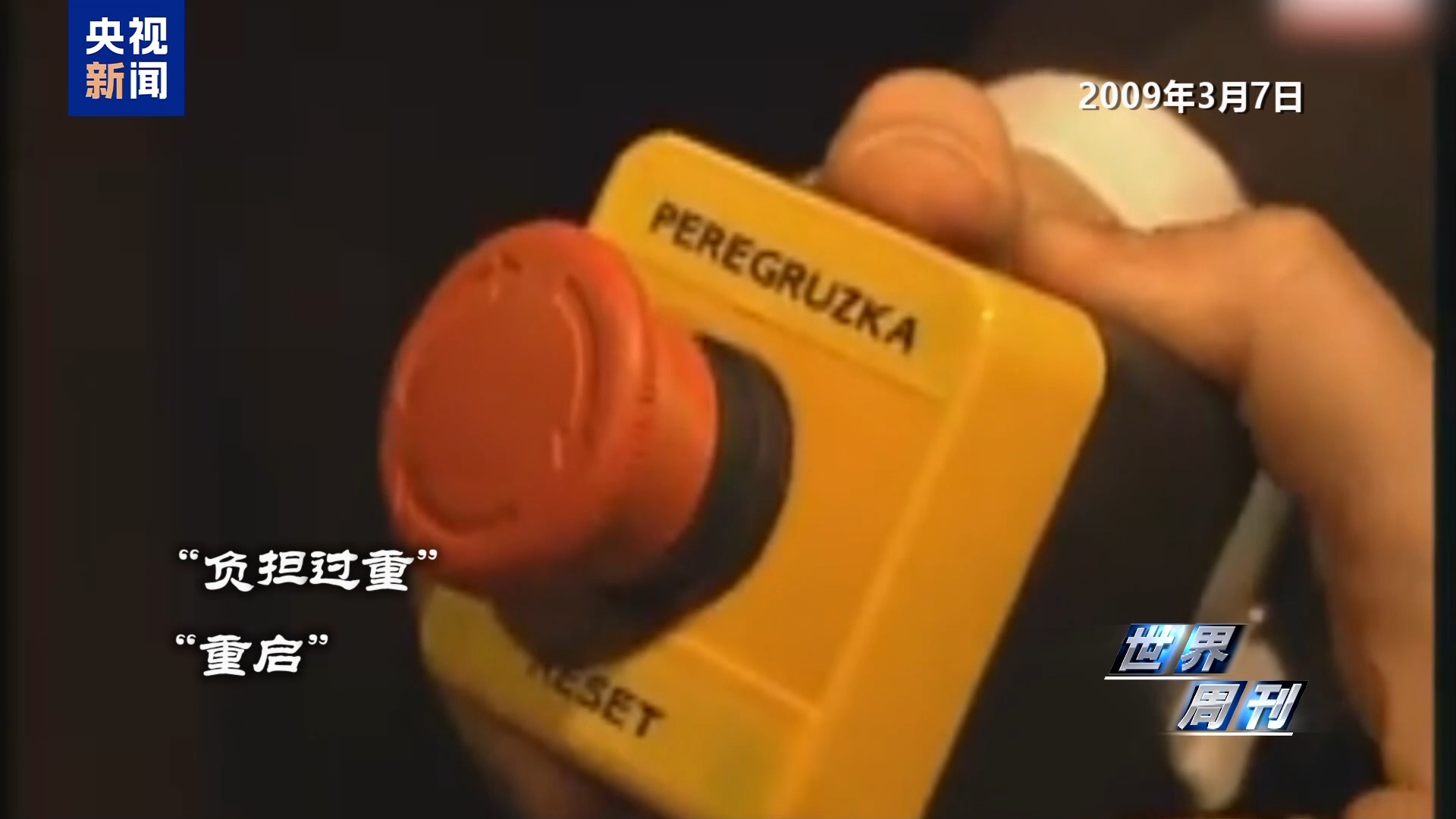 2009年3月7日,時任美國國務卿希拉里與俄外長拉夫羅夫曾同時按下一個紅色按鈕,宣佈兩國關係“重啓”。按鈕上方寫有俄文“負擔過重”,下方寫有英文“重啓”字樣。值得注意的是,當時的俄羅斯總統就是梅德韋傑夫。