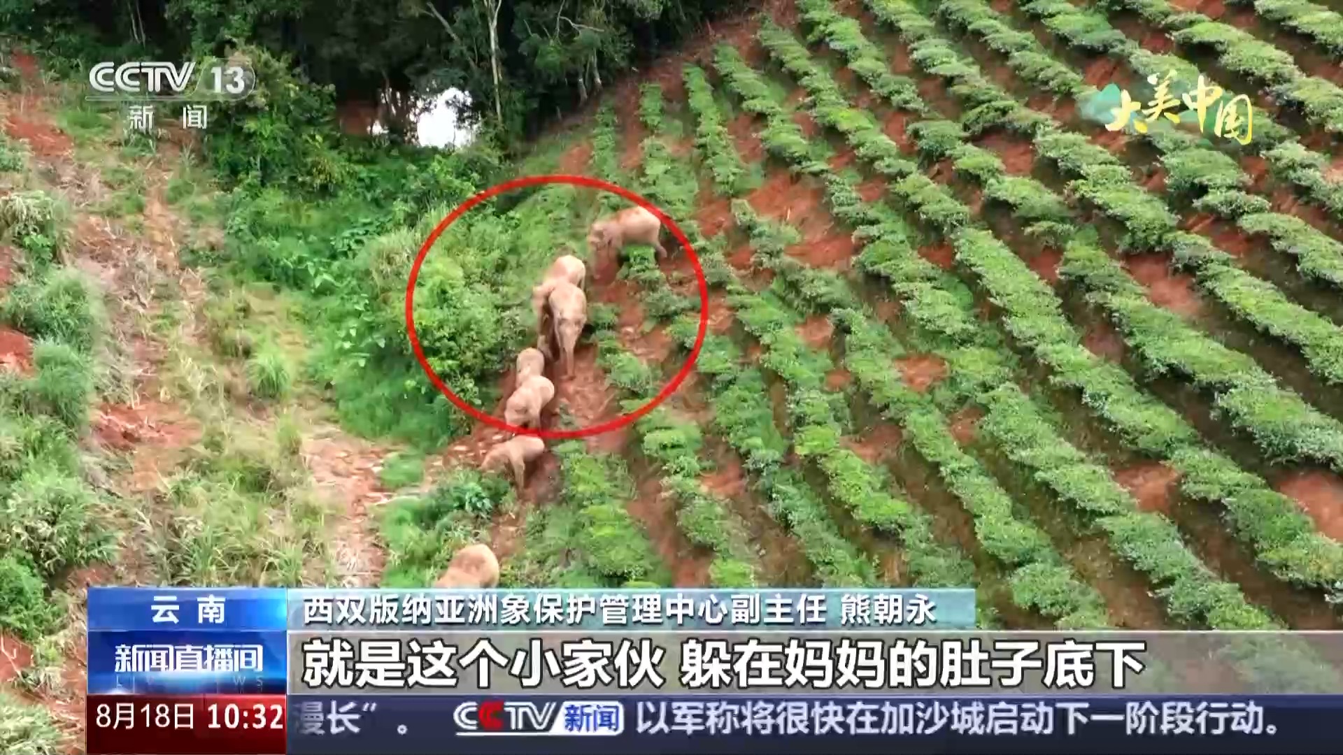 *熊朝永:*這個小傢伙躲在媽媽的肚子底下,這就是今年新生的小象,非常不錯。近幾年每年我們監測,都有新生小象出生,家族興旺。