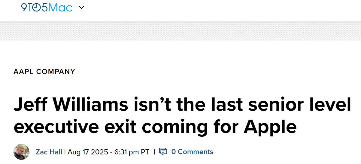 【環球網科技綜合報道】8月18日消息,據9to5mac報道,馬克·古爾曼(Mark Gurman)透露,蘋果公司內部正在討論更多高層離職的計劃。