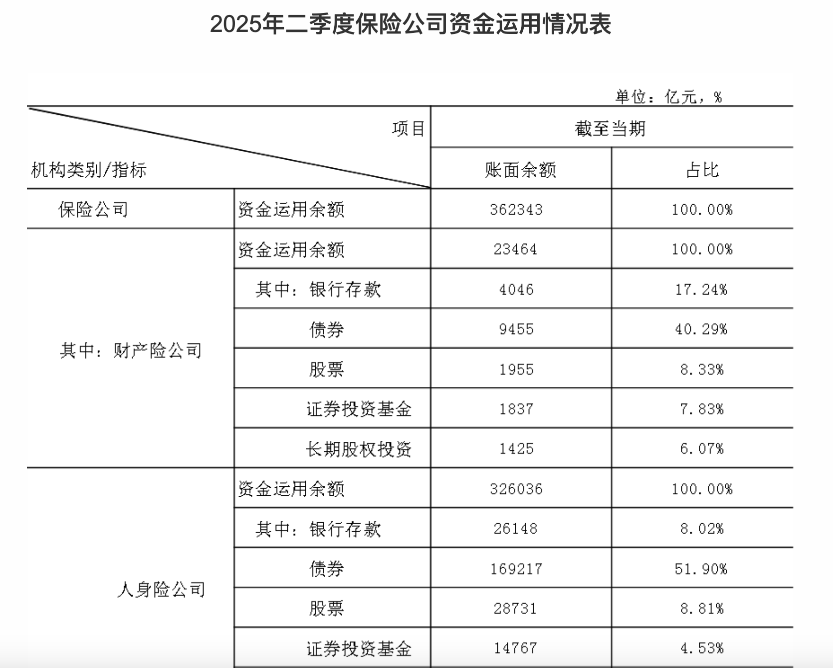 在投資領域,股票和證券投資基金成為市場關注的焦點。截至二季度末,人身險和財產險公司在這兩方面的投資餘額共計4.73萬億元。其中,人身險公司投資與股票和證券投資基金的餘額為4.35萬億元,同比增長25.7%,佔其資金運用餘額的13.34%,創下2023年以來的新高;財產險公司投資餘額為3792億元。