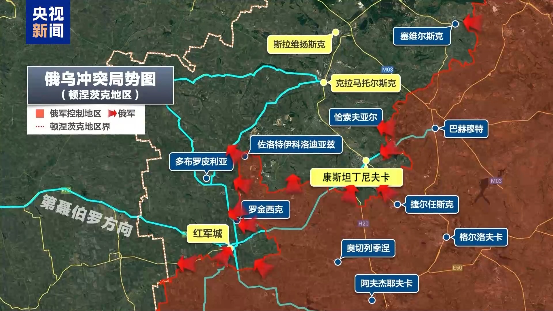 在頓涅茨克西部的紅軍城(烏稱波克羅夫斯克)方向,俄軍不斷推進,已對紅軍城構成半包圍態勢。
