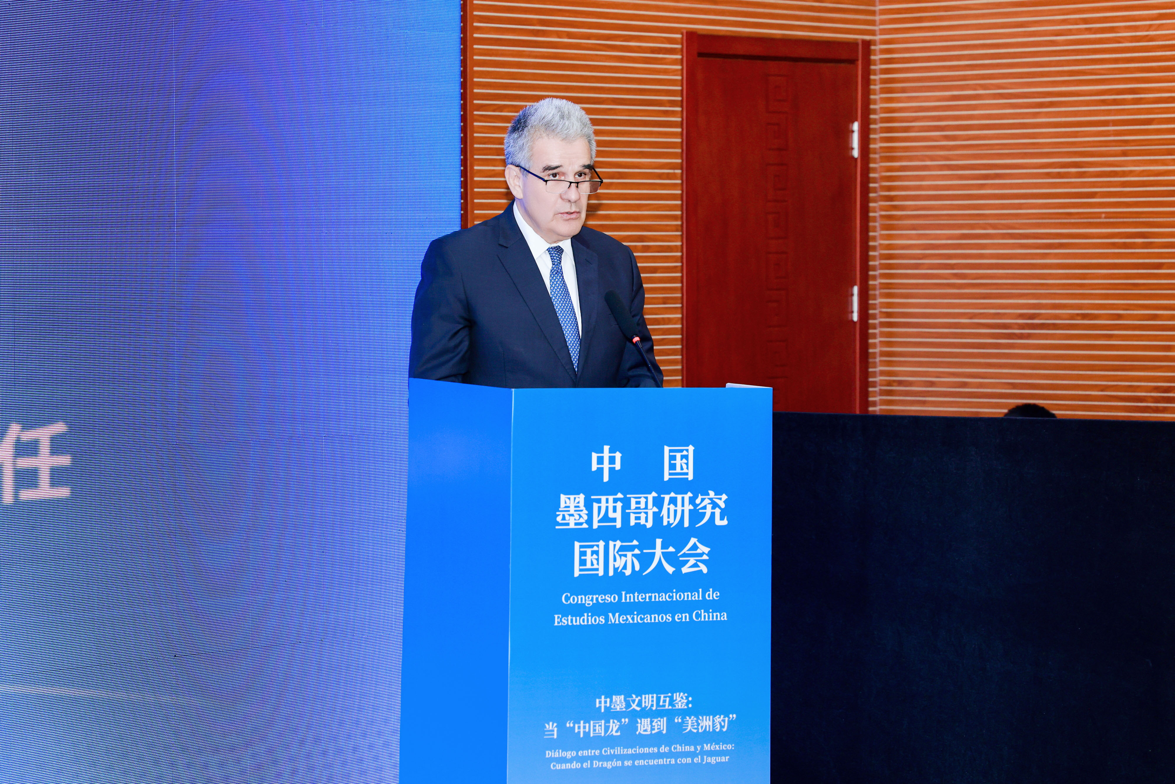 大會開幕式上,多位嘉賓先後致辭,圍繞中墨交流與合作發表真知灼見。中國社會科學院拉丁美洲研究所社會文化研究室主任郭存海研究員回顧了自己十二年前在墨西哥國立自治大學訪學的經歷,強調中墨文明交流互鑑的深遠意義。墨西哥駐華大使館臨時代辦塞爾吉奧·奎阿泰克(Sergio Kwiatek)介紹了墨西哥的歷史與傳統文化,指出民眾之間的合作與理解是雙邊關係的根基。墨西哥國立自治大學駐華代表處主任諾君輝教授(Adalberto Noyola)則強調深入認識墨西哥的現實價值,突出了其在歷史、文化、自然資源以及作為北美自由貿易區成員和西語國家戰略伙伴的重要地位。復旦大學西葡語國家研究中心主任程弋洋教授結合中墨在教育、學術、藝術等領域的長期互動經驗,指出雙方已建立起多層次、立體化的交流網絡。亞洲墨西哥研究委員會代表、日本墨西哥教師協會主席西爾維婭·馬丁內斯(Silvia Martínez)則表示,墨西哥研究對於推動中國及東亞地區的學術發展具有重要意義。