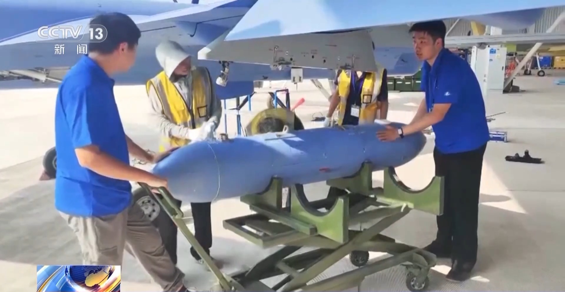 *中國氣象局氣象探測中心基地室 劉振宇:*飛機兩端機翼下面掛的是機載下投探空系統,獲取飛機航線下邊的温濕壓風等基本大氣象要素。機頭下方淺藍色掛的是機載温濕擴線儀,它可以獲取機載下方的温濕壓以及亮温。