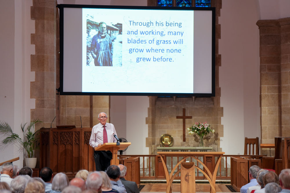 7月22日晚,英國赫特福德郡哈彭登鎮,何克逝世80週年紀念活動現場,座無虛席。屏幕上,一幀幀畫面定格下何克在中國的身影與足跡。講台上,何克的外甥馬克·艾爾温·托馬斯深情講述80多年前的往事。