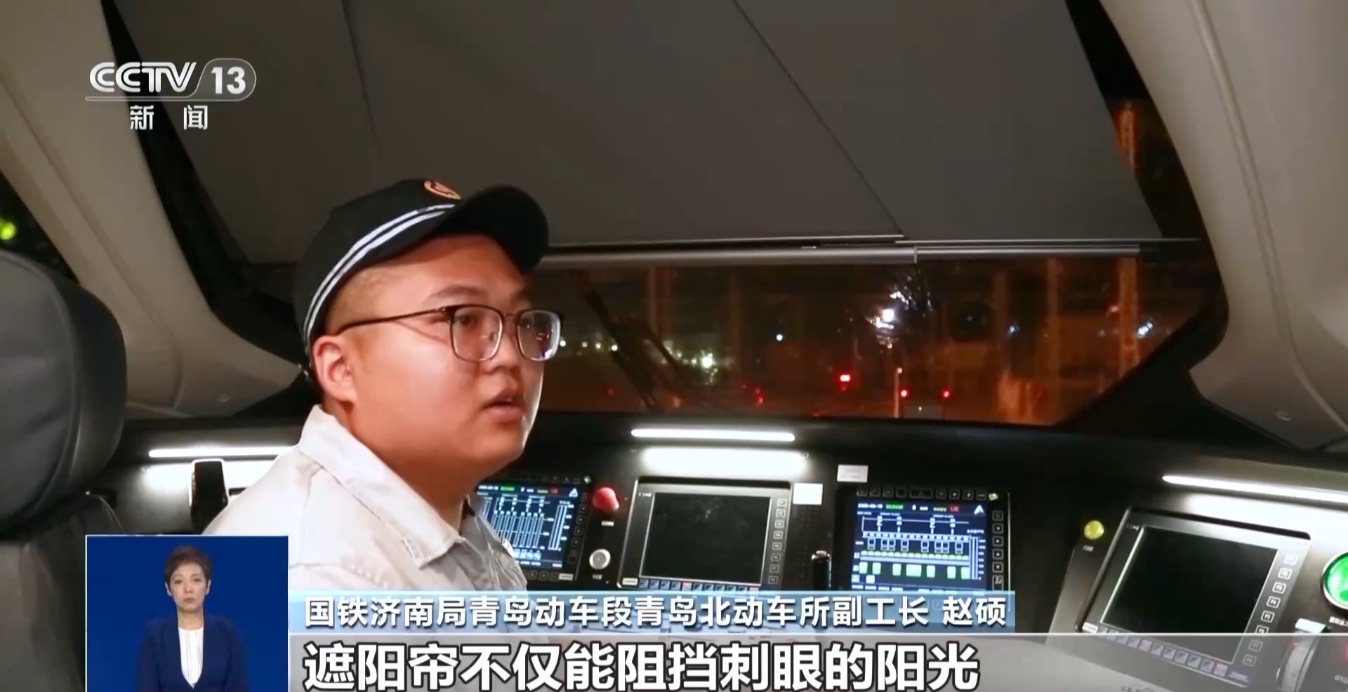 *國鐵濟南局青島動車段青島北動車所副工長 趙碩:*遮陽簾不僅能阻擋刺眼的陽光,還能避免駕駛艙內温度快速升高,減少儀表盤、操縱枱設備等因長時間暴曬出現過熱情況。