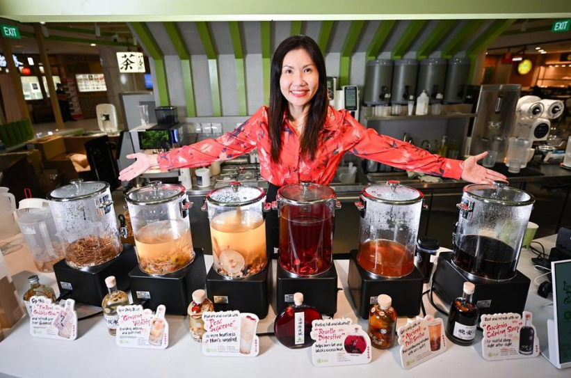 有新加坡本地企業家引入新式養生茶飲品牌,以中醫藥理念為基礎,提供比甜味珍珠奶茶更健康、具有功能性的22款飲品(如圖)。例如,新品靈芝龍參飲融合靈芝和人蔘以增強免疫力、緩解疲勞,同時加入茉莉茶和牛奶,更適合年輕消費者。9月,一些門店將推出AI智能鏡,可掃描顧客面部及舌象,提供體質診斷並推薦適合茶飲。新加坡本土茶館還在推動茶文化與靜心生活。5月開業的茶館主打潮州工夫茶,提供高級單叢烏龍、冰茶、冷泡茶及茶點,茶點用料也與茶相關,如草莓單叢蛋糕,採用茶香鮮奶油和果凍裝飾。